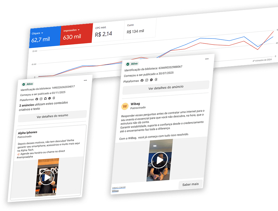 Criamos estratégias de mídia orientadas a dados para gerar crescimento real. Atuamos em todo o funil — da aquisição à conversão — otimizando investimentos, testando constantemente e escalando o que realmente traz resultado